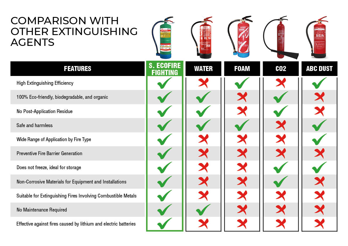 VIS PRODUKTEffektiviteten til ECOFIRE sammenlignet med andre slokkemidler